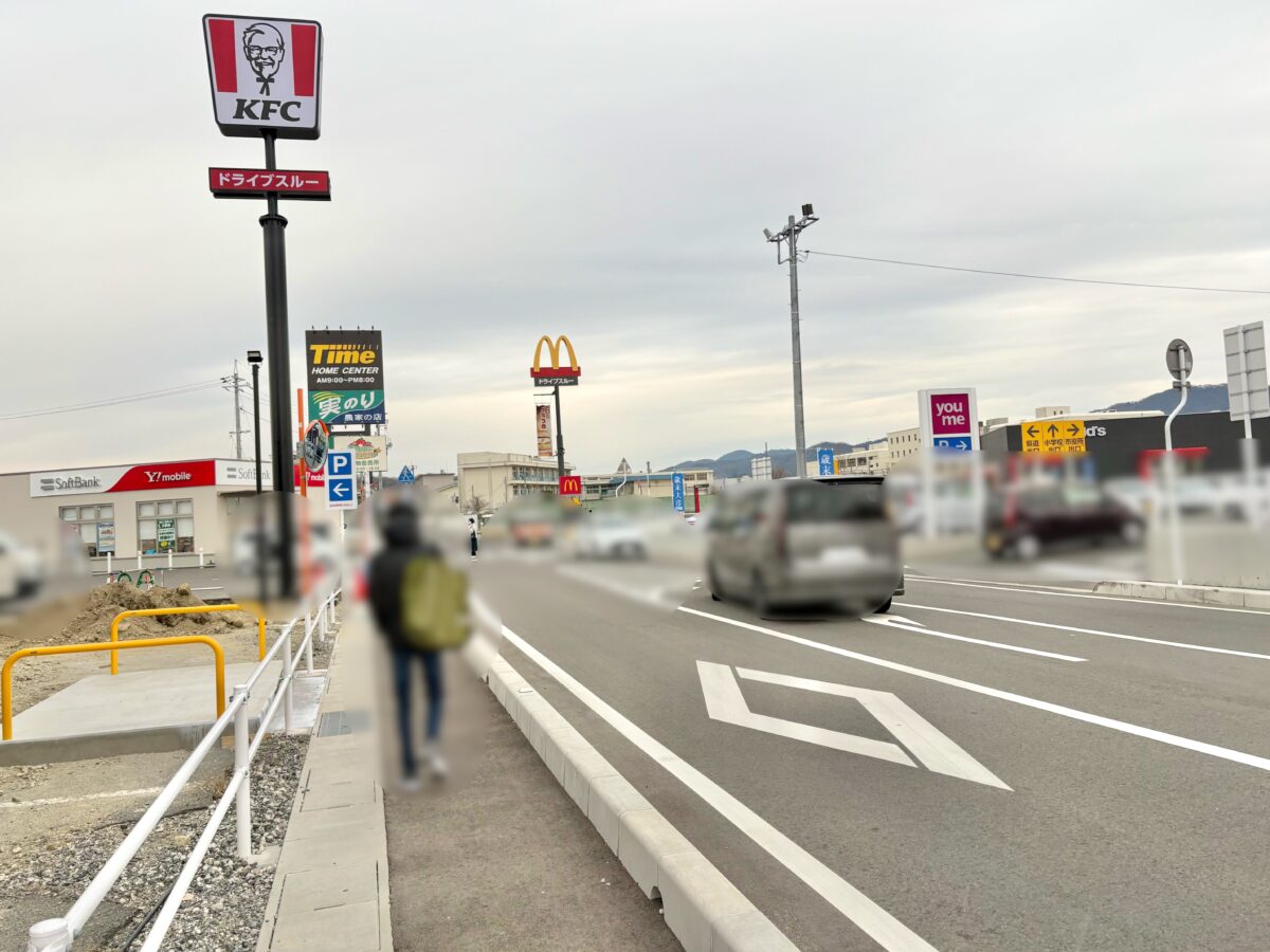 反対を見ると「マクドナルド ゆめモール山陽店」や「回転寿司 すし丸 ゆめモール山陽店」、「ホームセンタータイム山陽店」、「山陽小学校」の方です。
