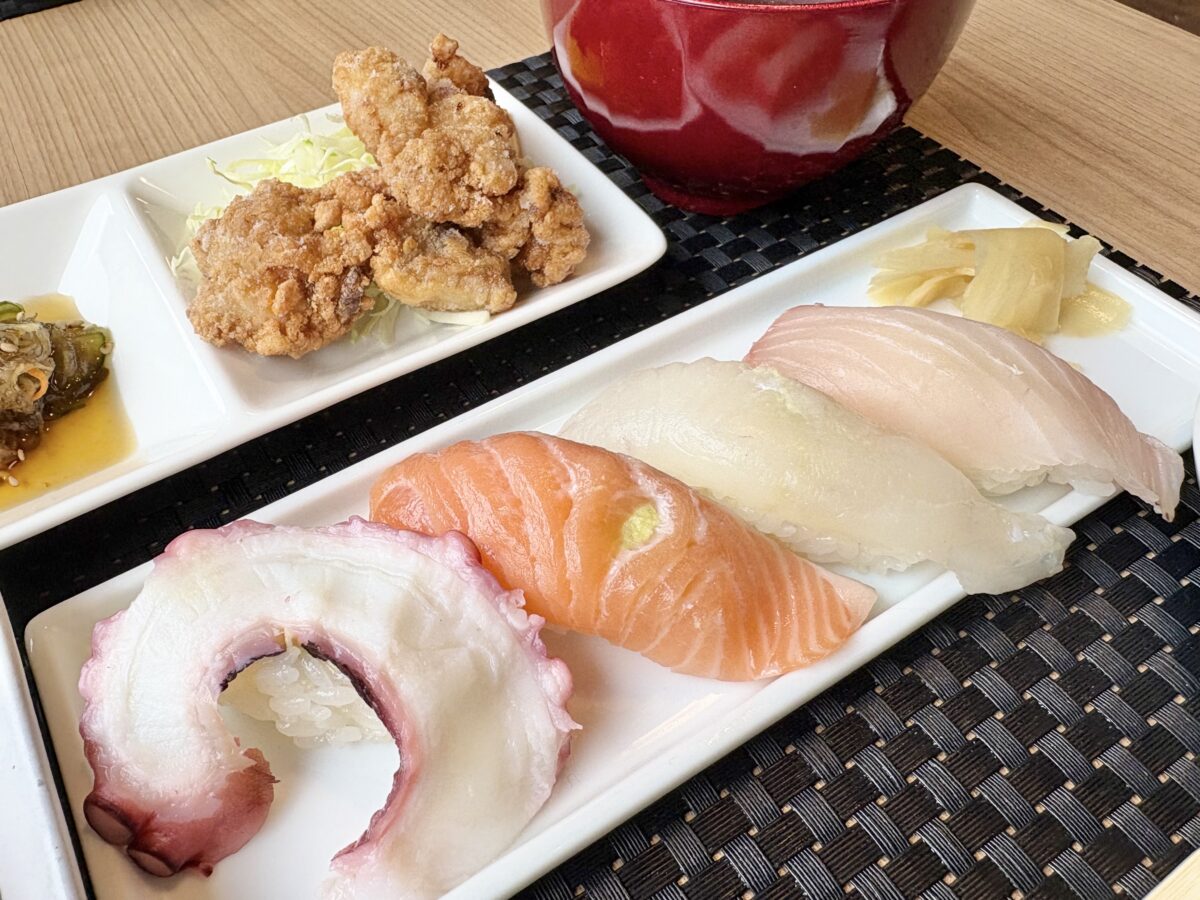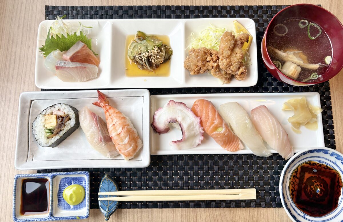 タコやエビ、はまちなどに酢の物と唐揚げが付きました。