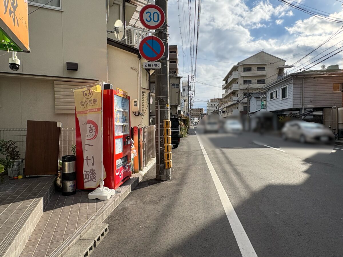 左を見るとこちらも最近オープンしたマーラータンのお店「李记麻辣烫」さんや「ファミリーマート 清輝橋一丁目店」、大学病院通りに行くと「韓国料理 草家」さんがあるあたりへ続きます。