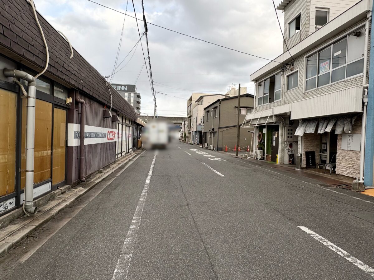 お店から左を見ると「ニシナ 本店」があって、「中華そば たく」さんや「Creperie Le Breton」さんなどがある方です。