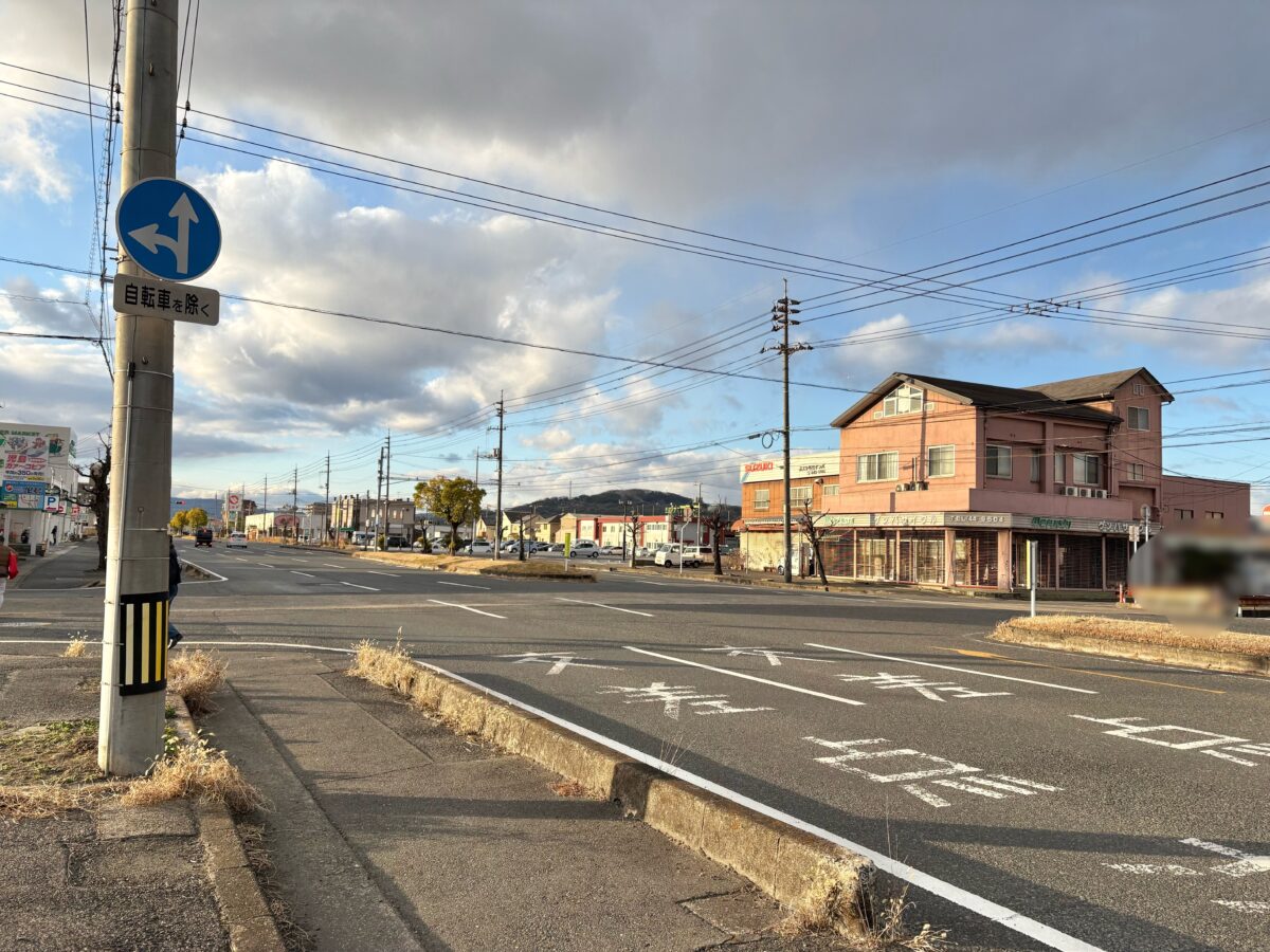 左を見ると「ハート 水島神田店」や「あしたの夏二郎 水島店」がある方面です。