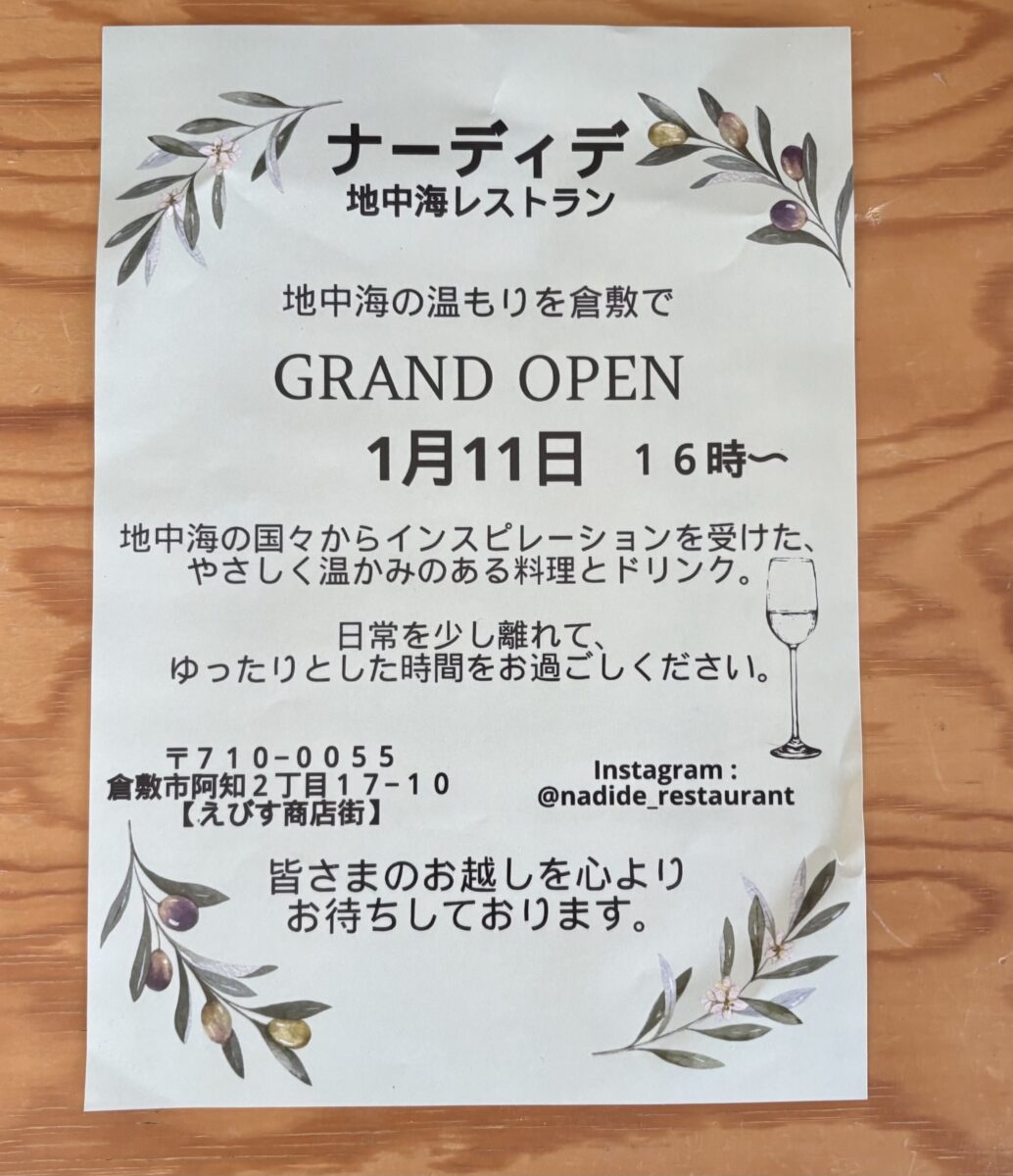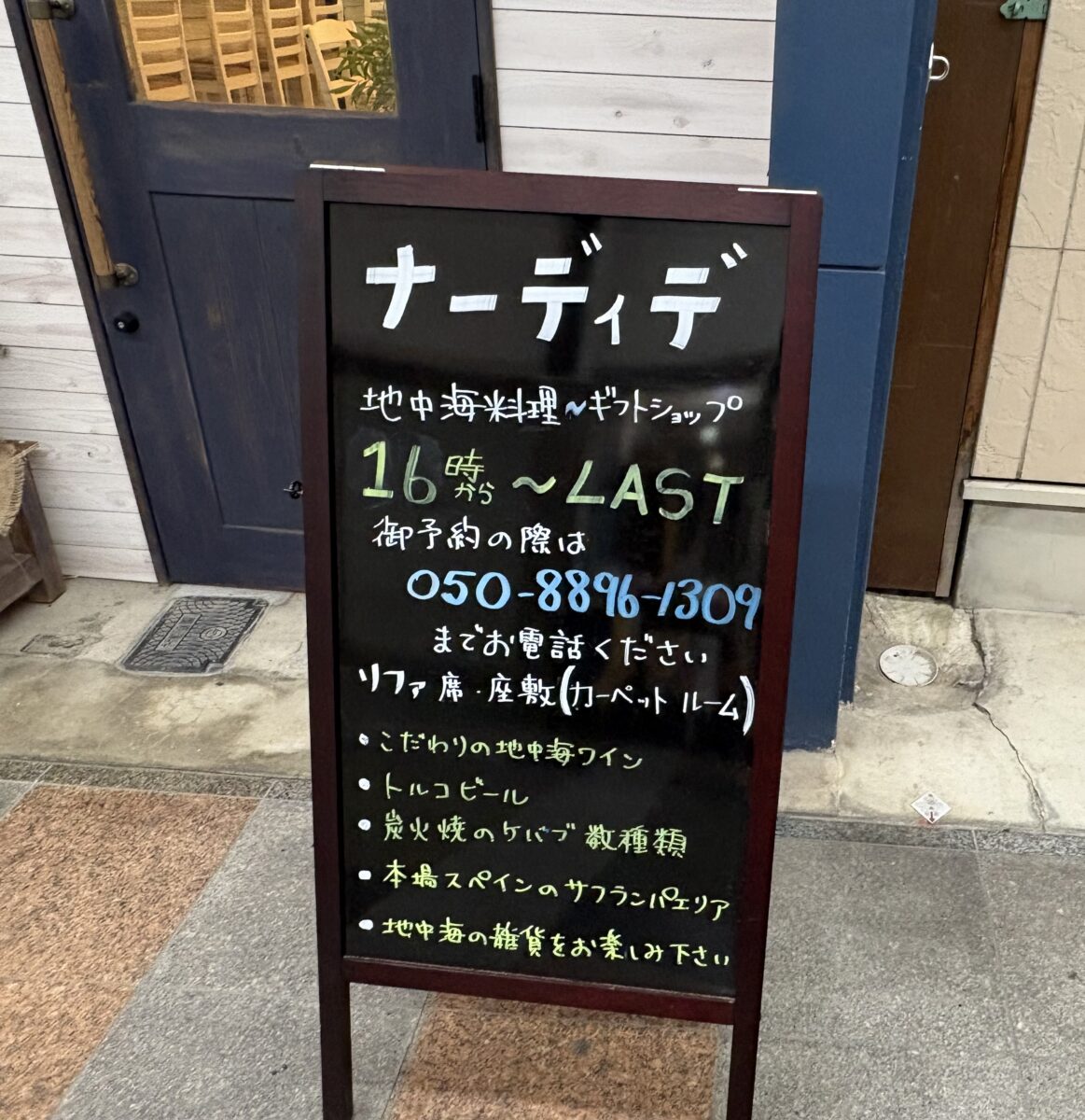 えびす通り商店街に作ってた地中海料理のお店「ナーディデ」さんがオープンしていました。