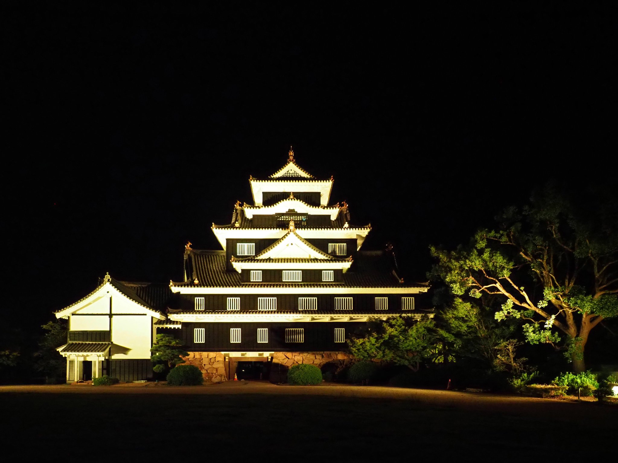 岡山城が黄色にライトアップされていました。