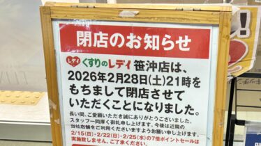 【倉敷市】ドラッグストア「くすりのレデイ 笹沖店」が2月28日で閉店