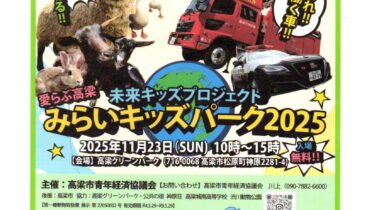 【高梁市】働く車や動物やグルメなどいろいろ!高梁グリーンパークでみらいキッズパーク2025が開催されるみたい。11/23