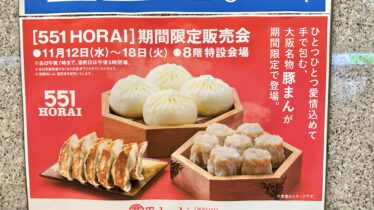 【岡山市北区】この秋も!「551HORAI」が期間限定販売会が開催されるみたい。岡山高島屋で 11/12(水) ~18(火)