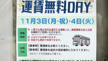支線バスも対象!11月3日・4日は岡山市の「路線バス・路面電車の運賃無料DAY」