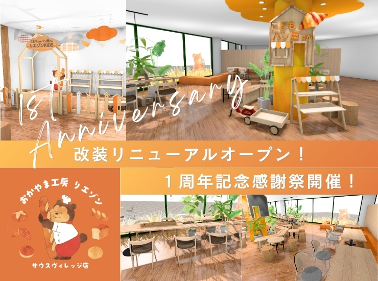 【岡山市南区】パン好き必見!「おかやま工房 リエゾン サウスヴィレッジ店」が改装リニューアルオープンと「1周年記念感謝祭」を開催するみたい。3/26・27