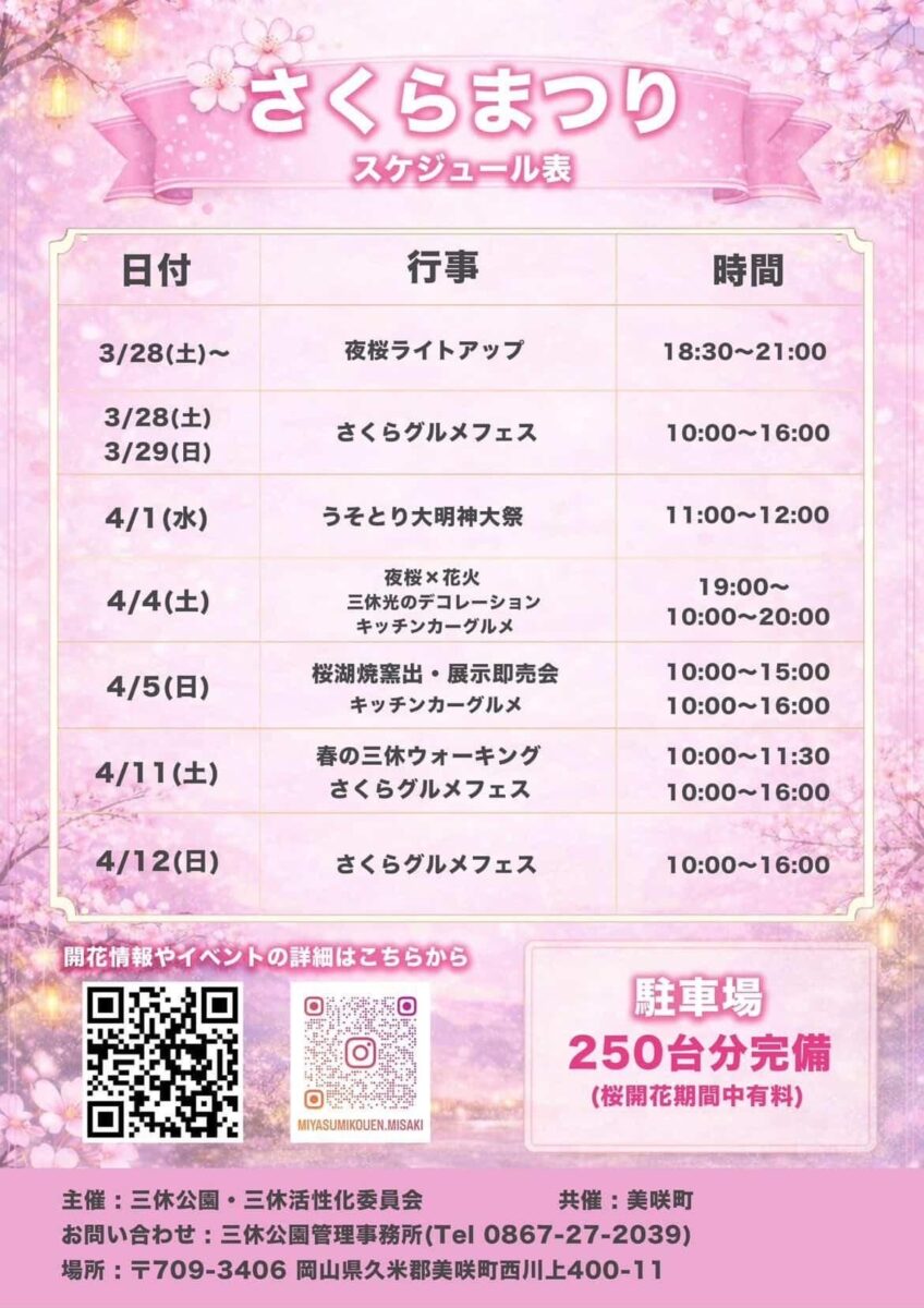 そんな三休公園では「3月22日~4月12日」の間、「三休公園さくらまつり」が開催中です。