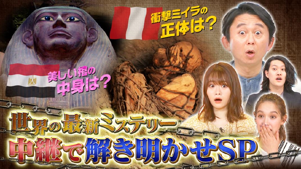 この回は、「世界の最新ミステリー! ミイラの謎を解明SP」という ことでエジプト・イタリア・フランス・ペルーと中継をつないで各地の事情をオンエア。