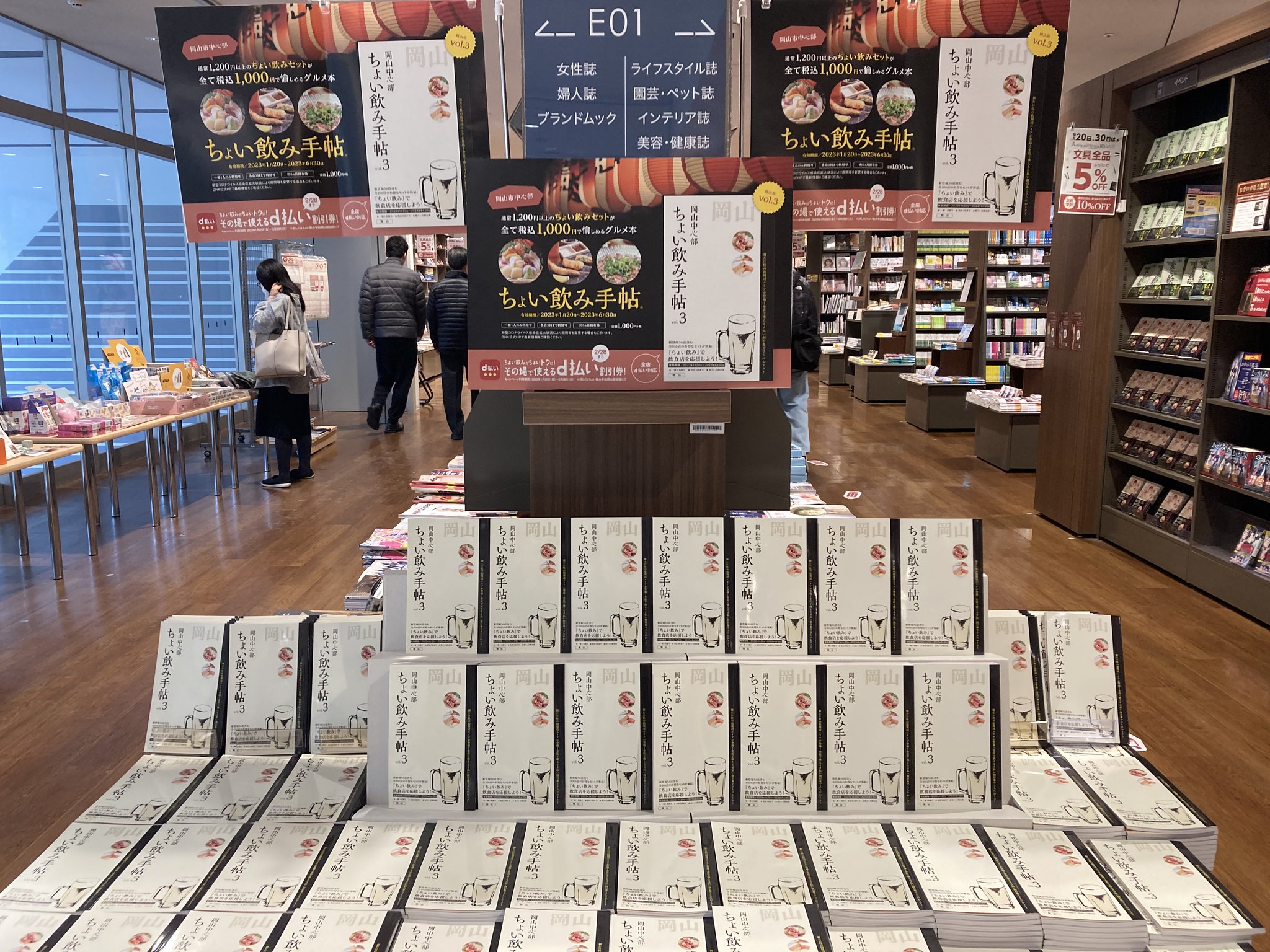 掲載店のお得なセットが1000円で楽しめる「ちょい飲み手帖 岡山版vol.3」が販売開始されてます。