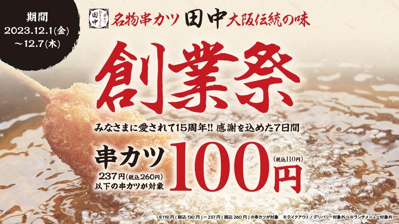 串カツ田中創業祭!~15年間の感謝を込めた7日間~