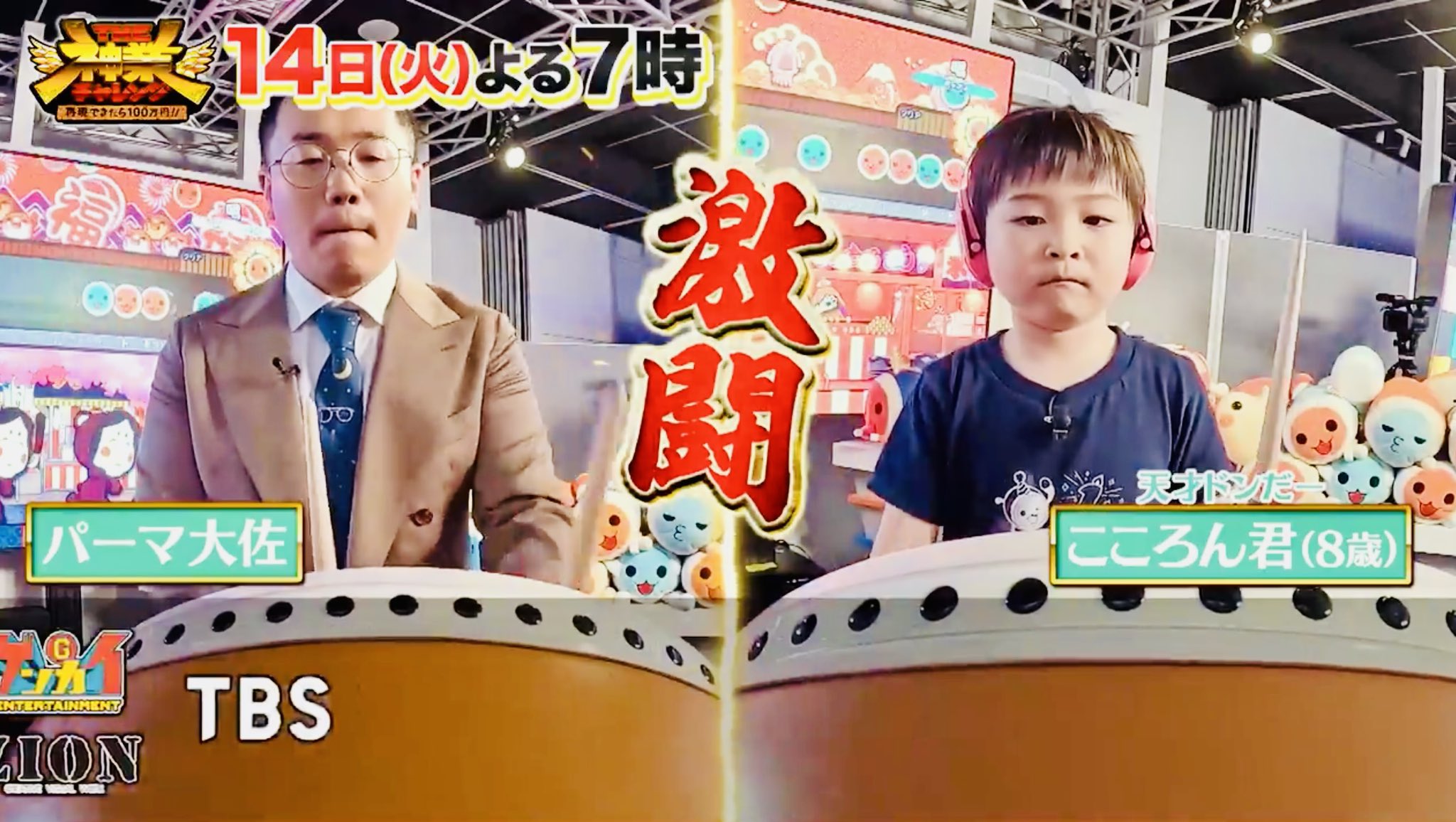 番組公式サイトの予告によると、『VS太鼓の達人王者・「パーマ大佐」画面隠しスペシャルマッチ』となっています。