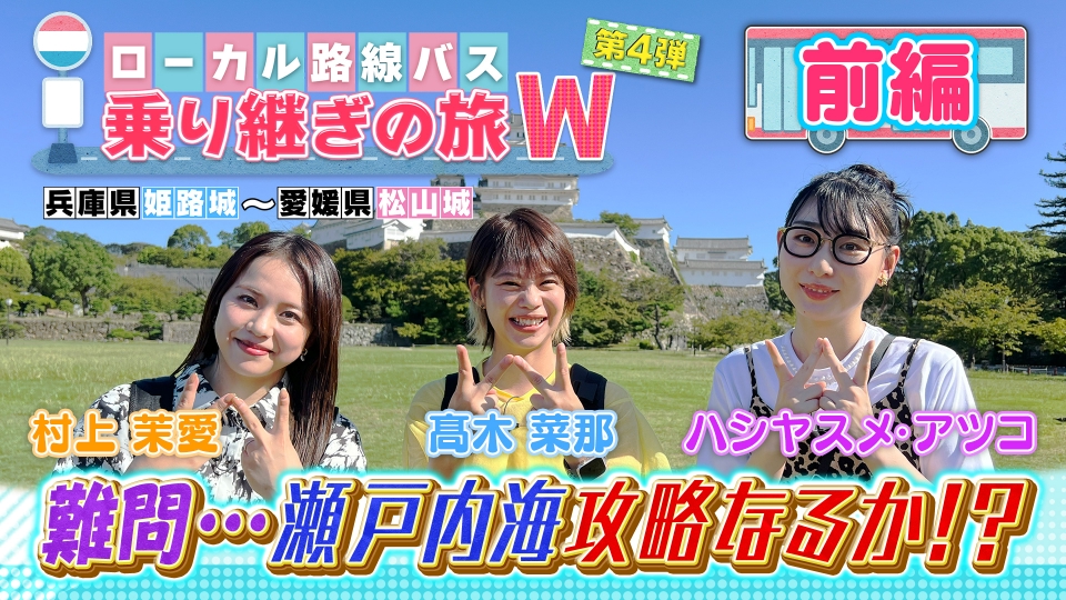 兵庫県の姫路城をスタートし、3泊4日で愛媛県の松山城を目指す番組で、元スピード スケート選手・高木菜那さんと元体操東京オリンピック銅メダリスト・村上茉愛さん、ガールズグループBiSH・ハシヤスメアツコさんが岡山を駆け巡っていました。