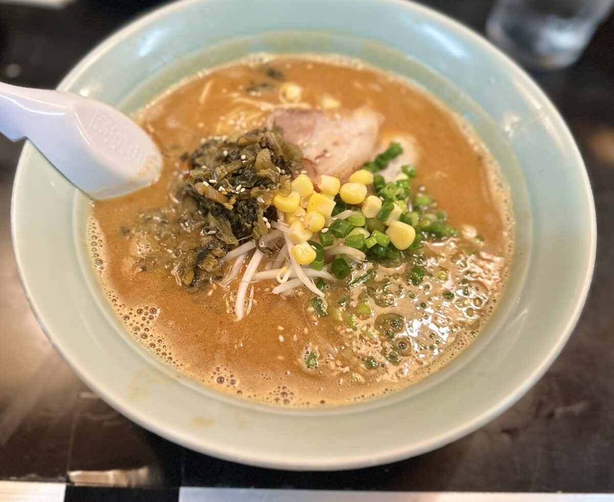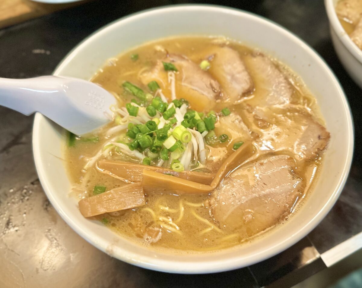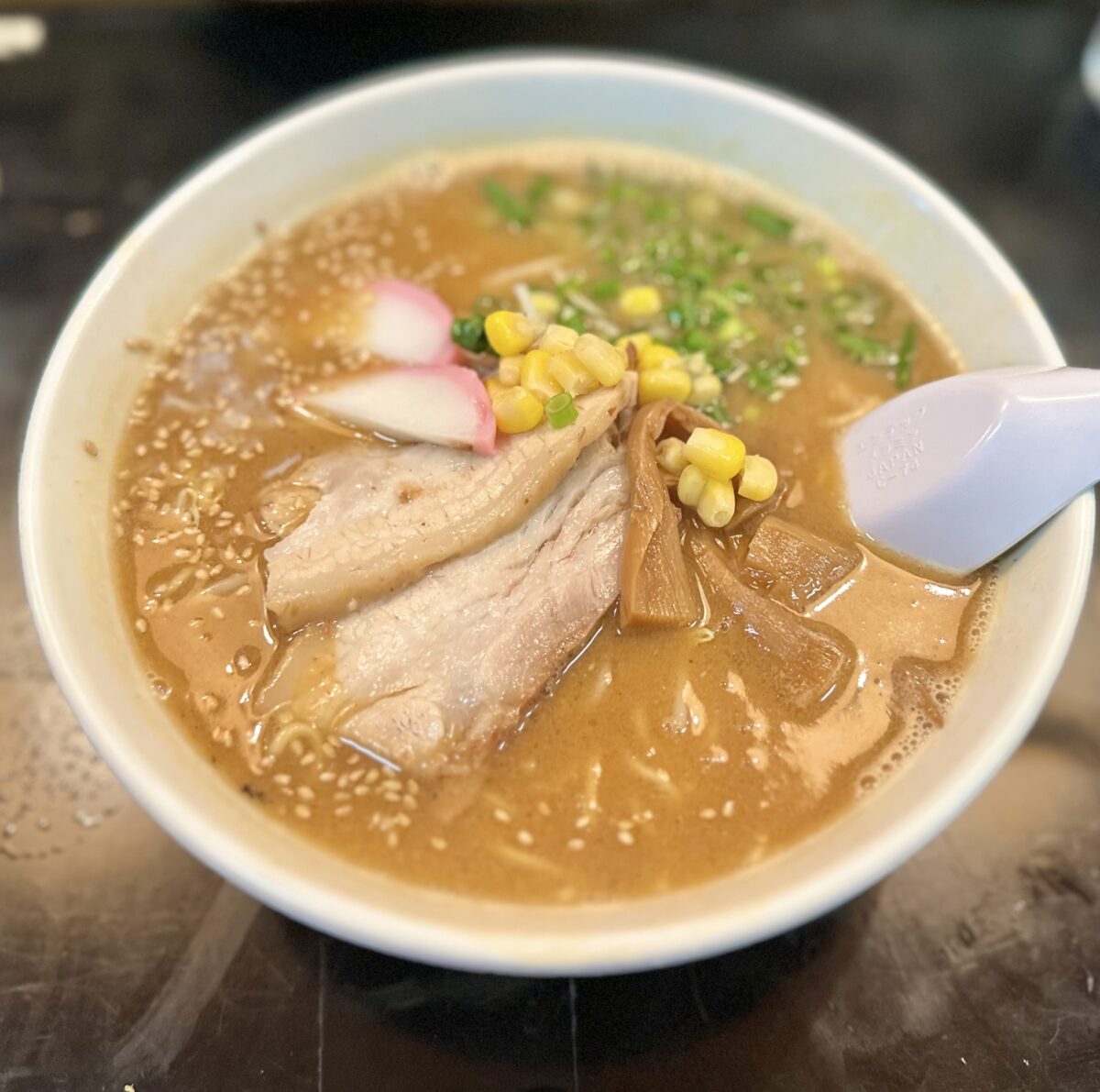 ピリ辛の豚松ラーメンを始め、しょうゆやみそ、塩、それにマーボー丼や玉子焼・餃子など一品料理などたくさんのメニューがあるラーメン店・豚松。