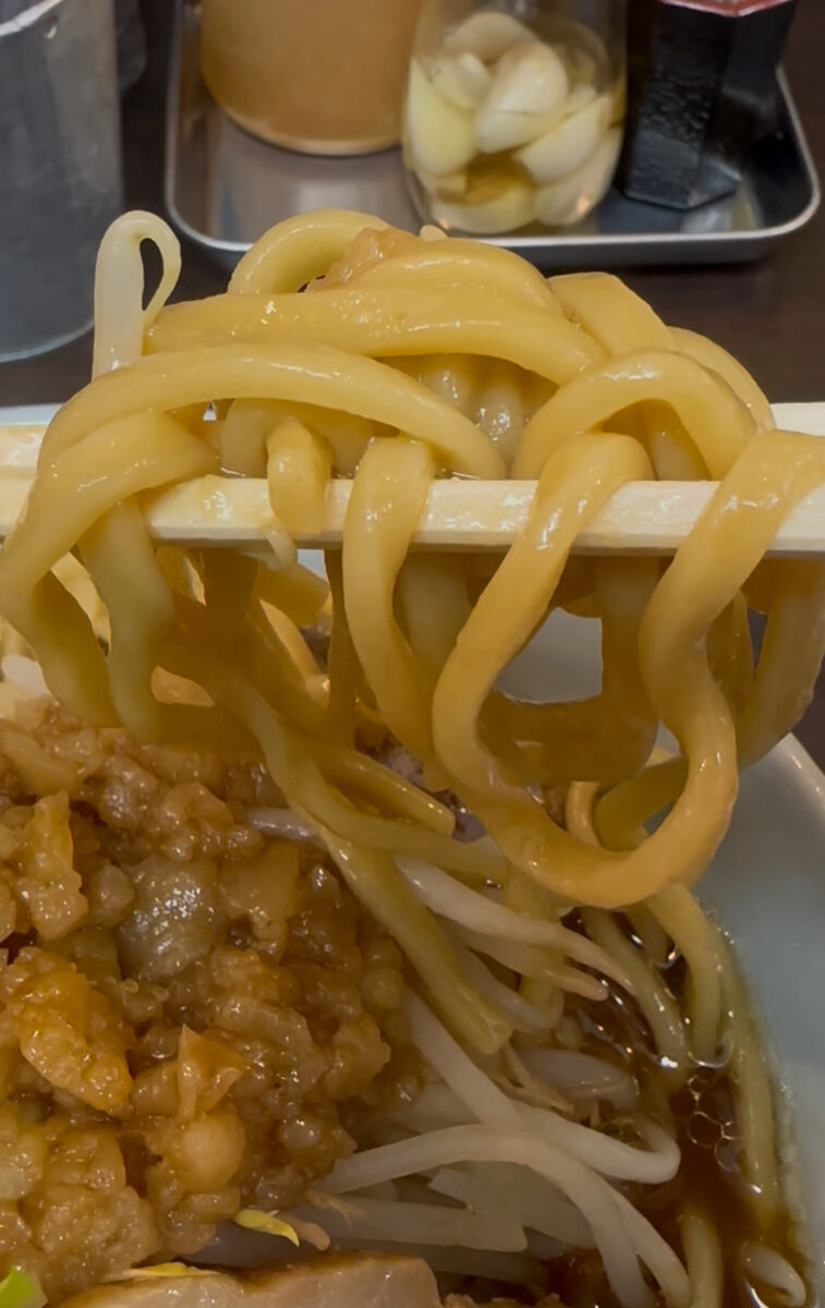 ニンニクや脂と絡めて力みなぎる二郎の特徴と食べやすさも合わさった一杯です!