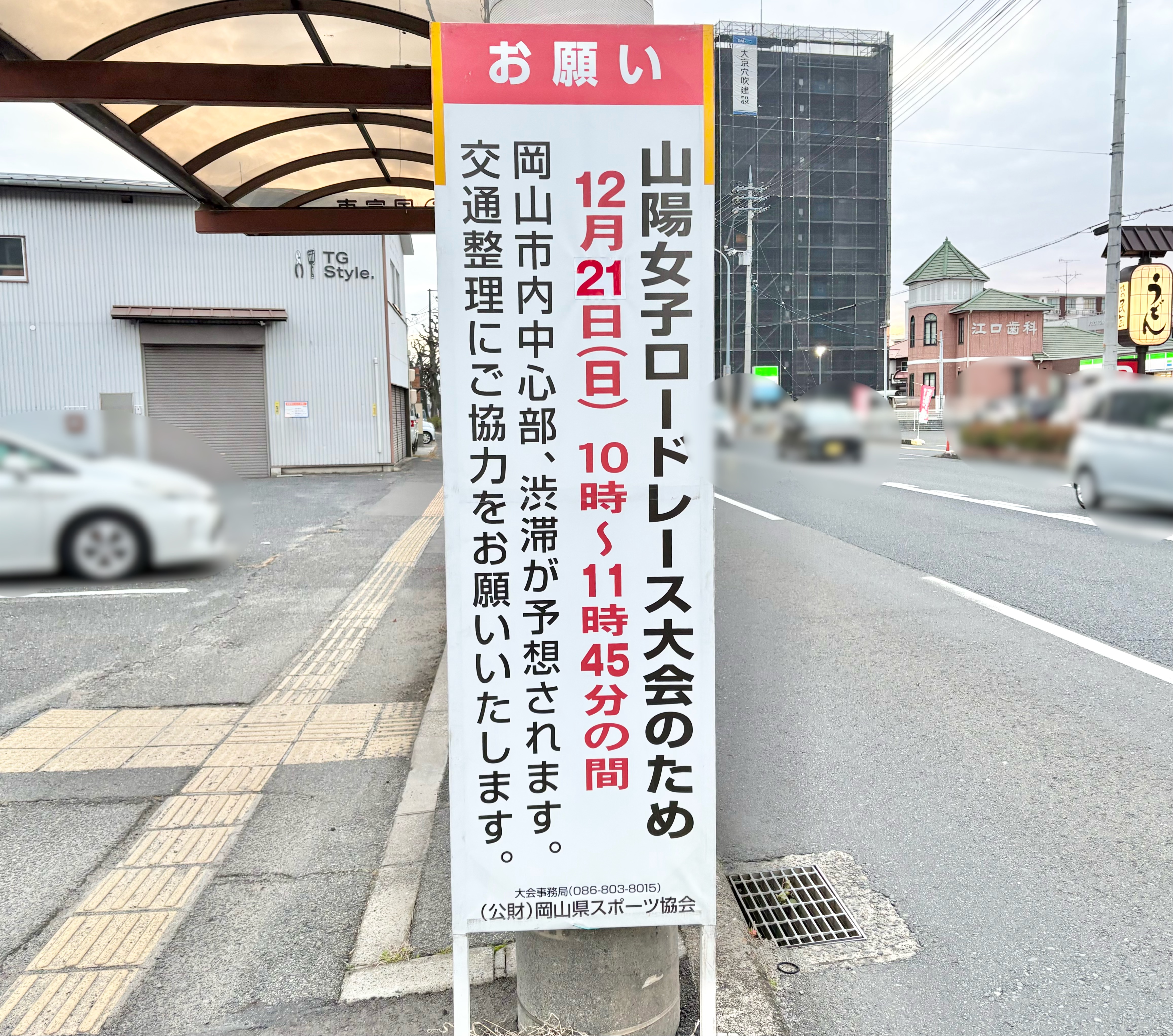 2025年12月21日、岡山市内中心部で開催される「第44回山陽女子ロードレース大会」による交通規制が行われるようです。