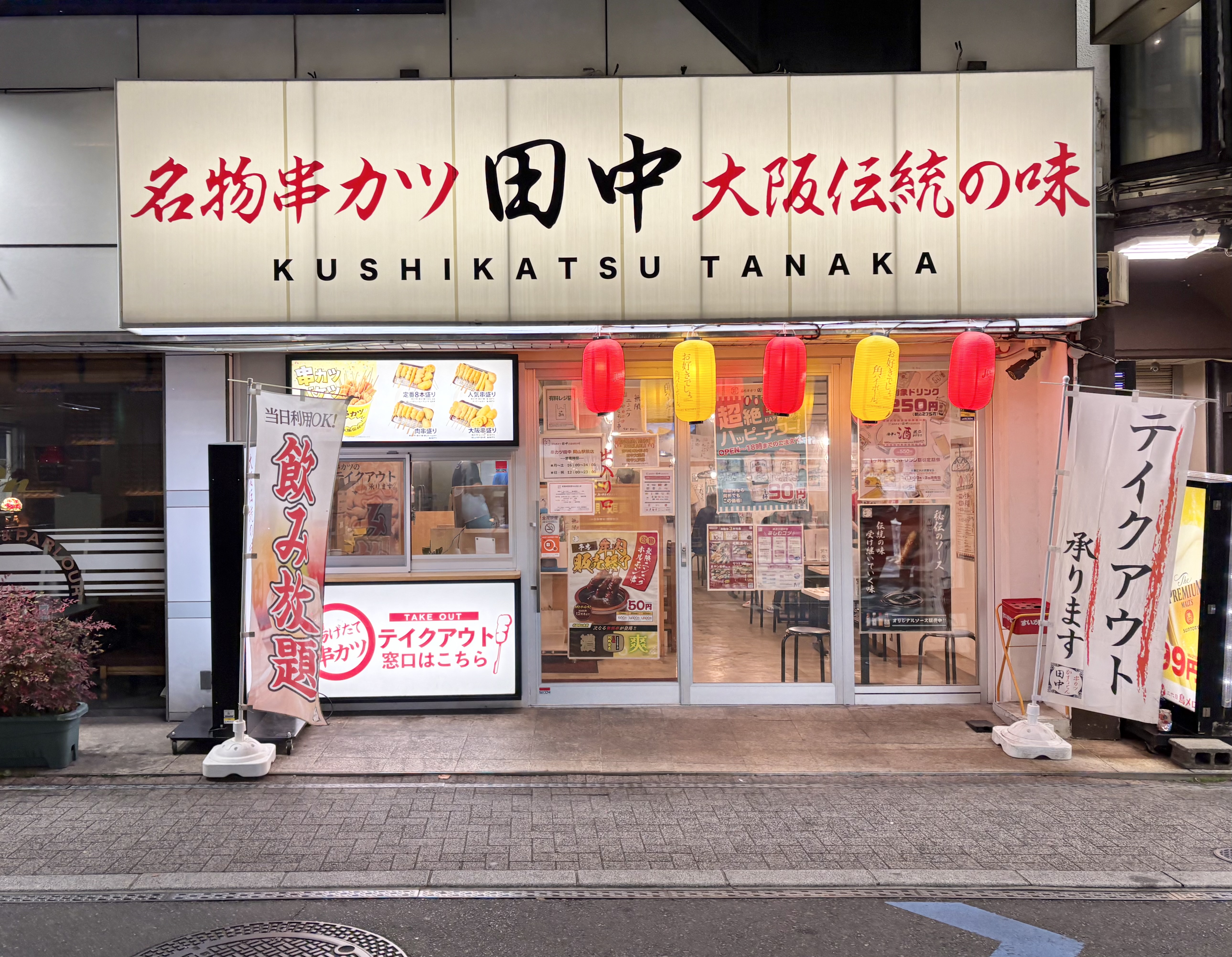 販売店舗は東京ドーム店を除く串カツ田中全店舗となっていまして、岡山県内には岡山駅前店が一店舗のみあります。