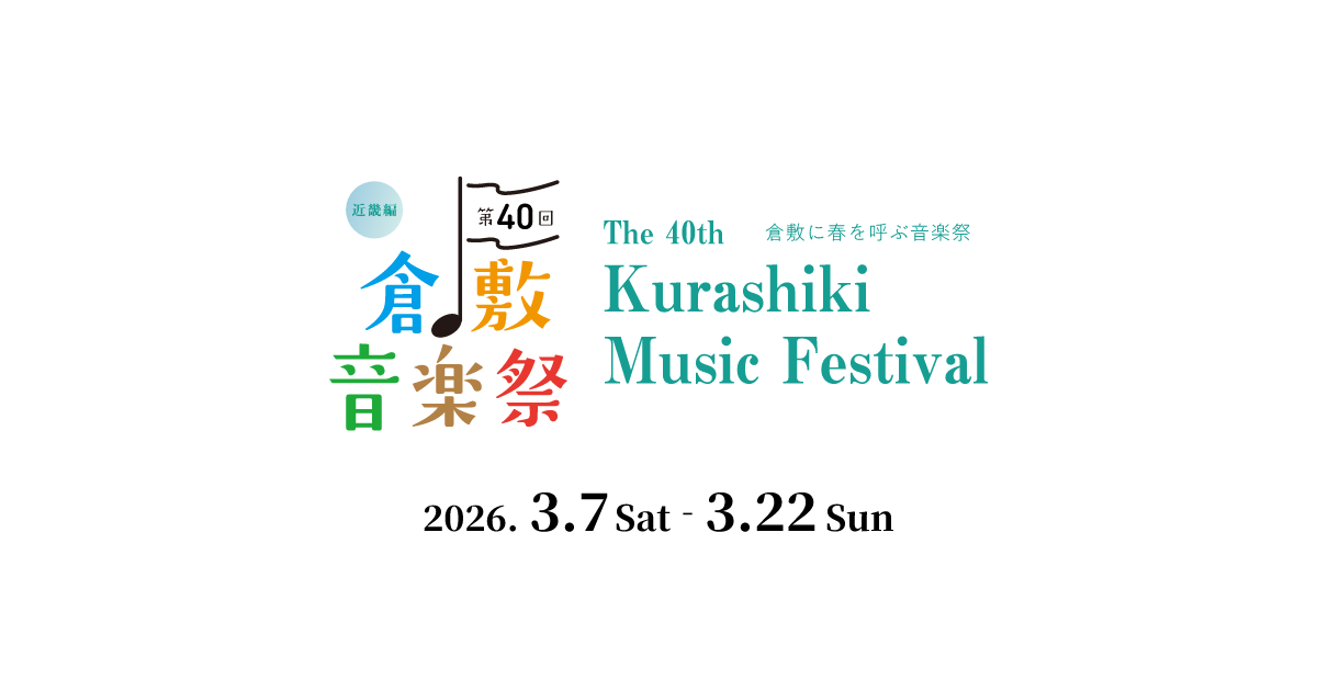 2026.3.7(Sat)〜3.22(Sun)倉敷の街並みに春を告げる倉敷音楽祭。今回の特集地域は「近畿」。ゆかりのアーティストや芸能の公演を開催するほか、市民の皆さまによる町並みコンサート、アマチュア文化団体による市民制作公演など、多彩な...